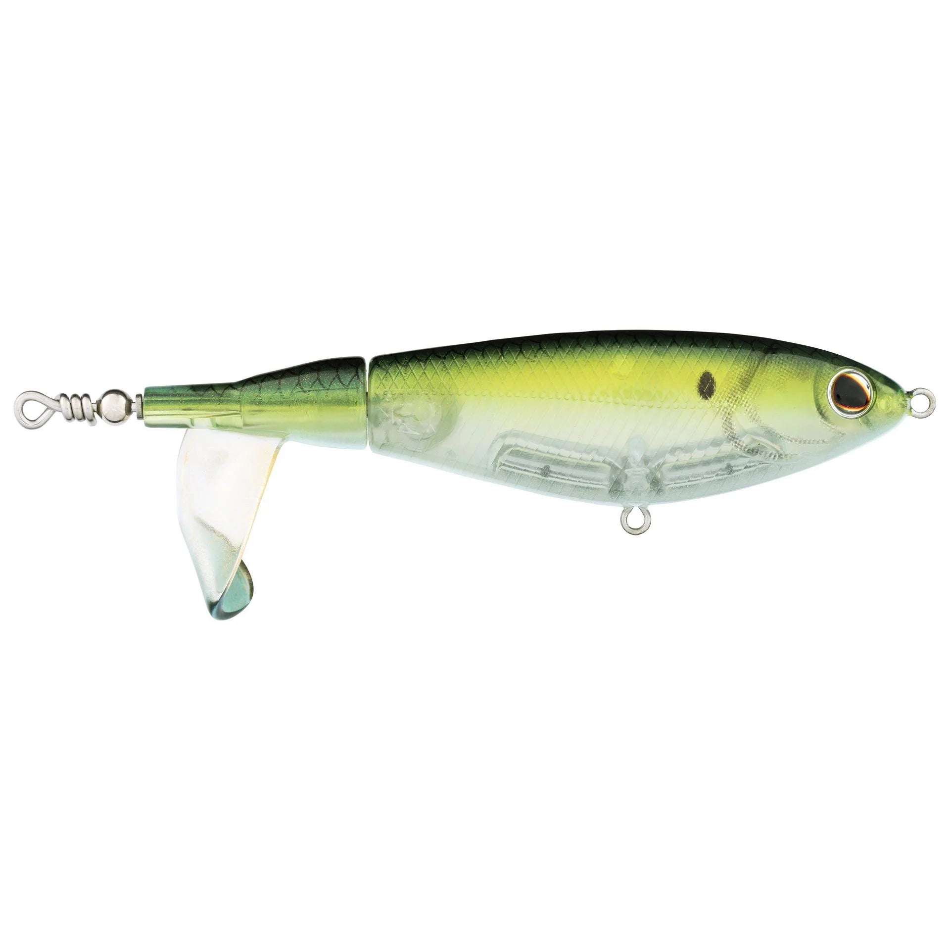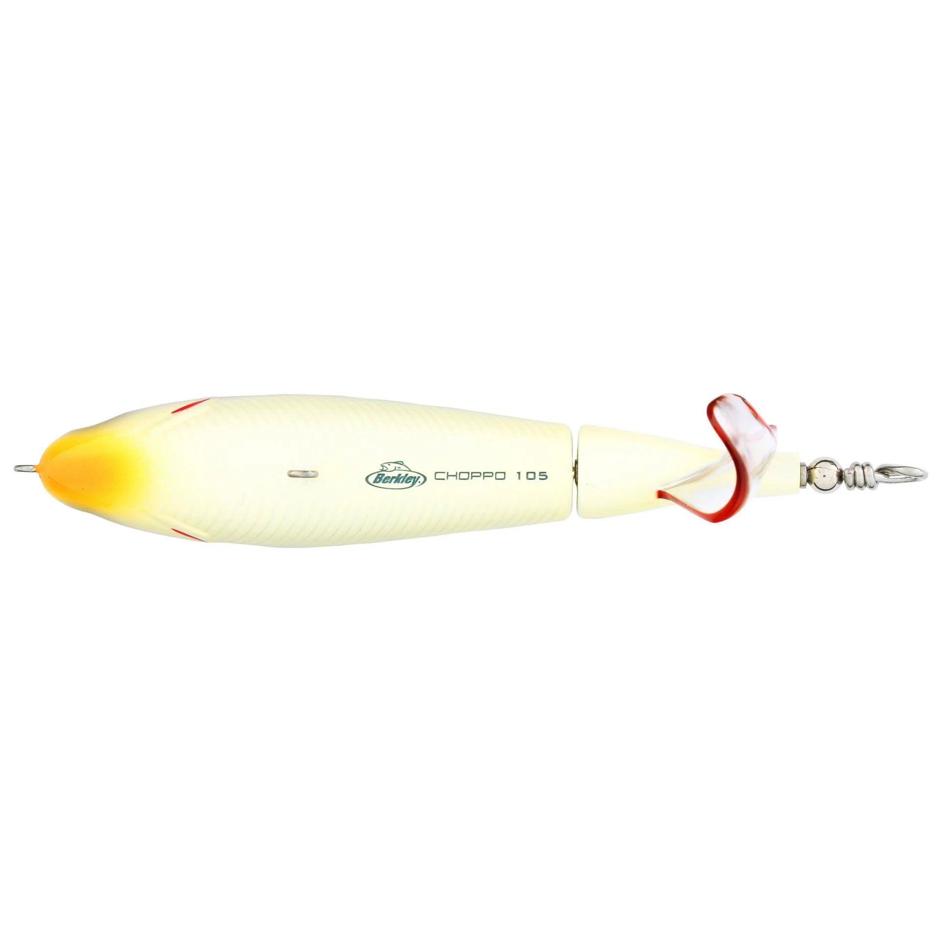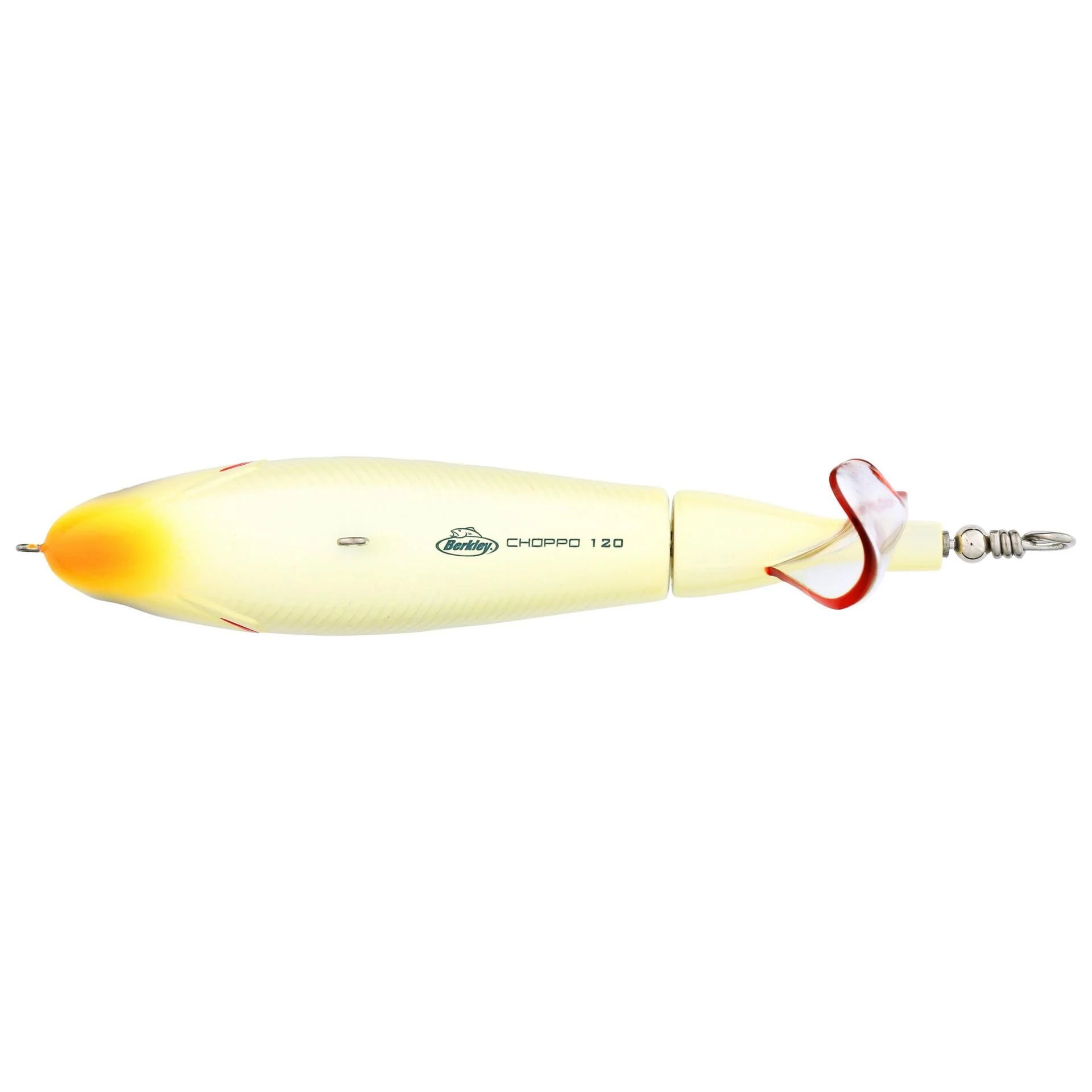 Whether you are a weekend warrior or a seasoned pro, this easy-to-use top water lure is designed to deliver explosive top water action. Chunk and wind the Berkley® Choppo around cover and in open water for a serious waking action. The Choppo’s durable tail propeller won’t melt in your tackle box, and the enhanced surface area provides more sound and spray. The precision balance of the bait ensures that its action begins immediately and swims straight at a variety of speeds.