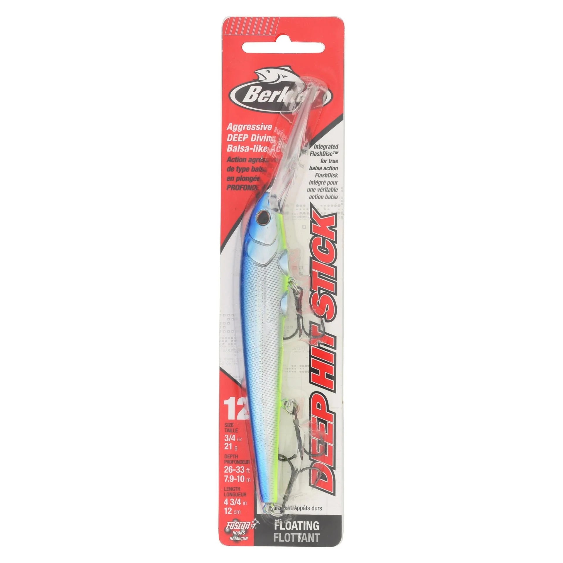 True balsa-like action with the durability and precision tracking of a premium hard-plastic lure. The Berkley® Deep Hit Stick delivers an aggressive, wider tail action than our Flicker Minnow perfect for deep, big or more aggressive fish that do not always react to the more finesse minnow baits.