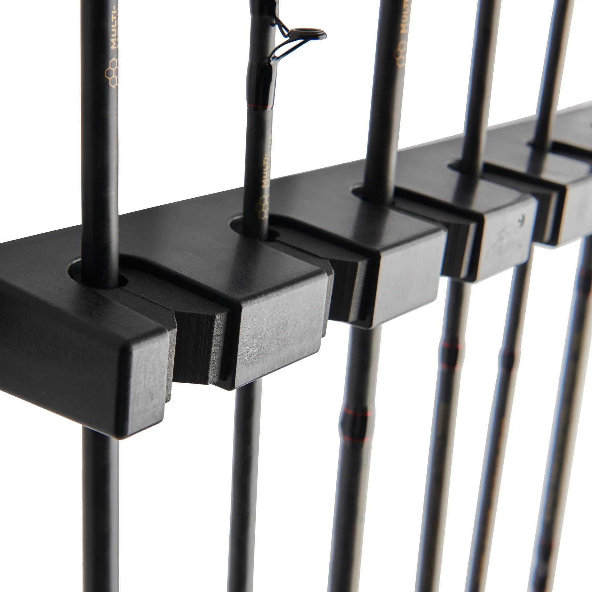 The Berkley® horizontal rod rack saves space while neatly and securely storing up to 4 or 6 complete rod and reel combos.