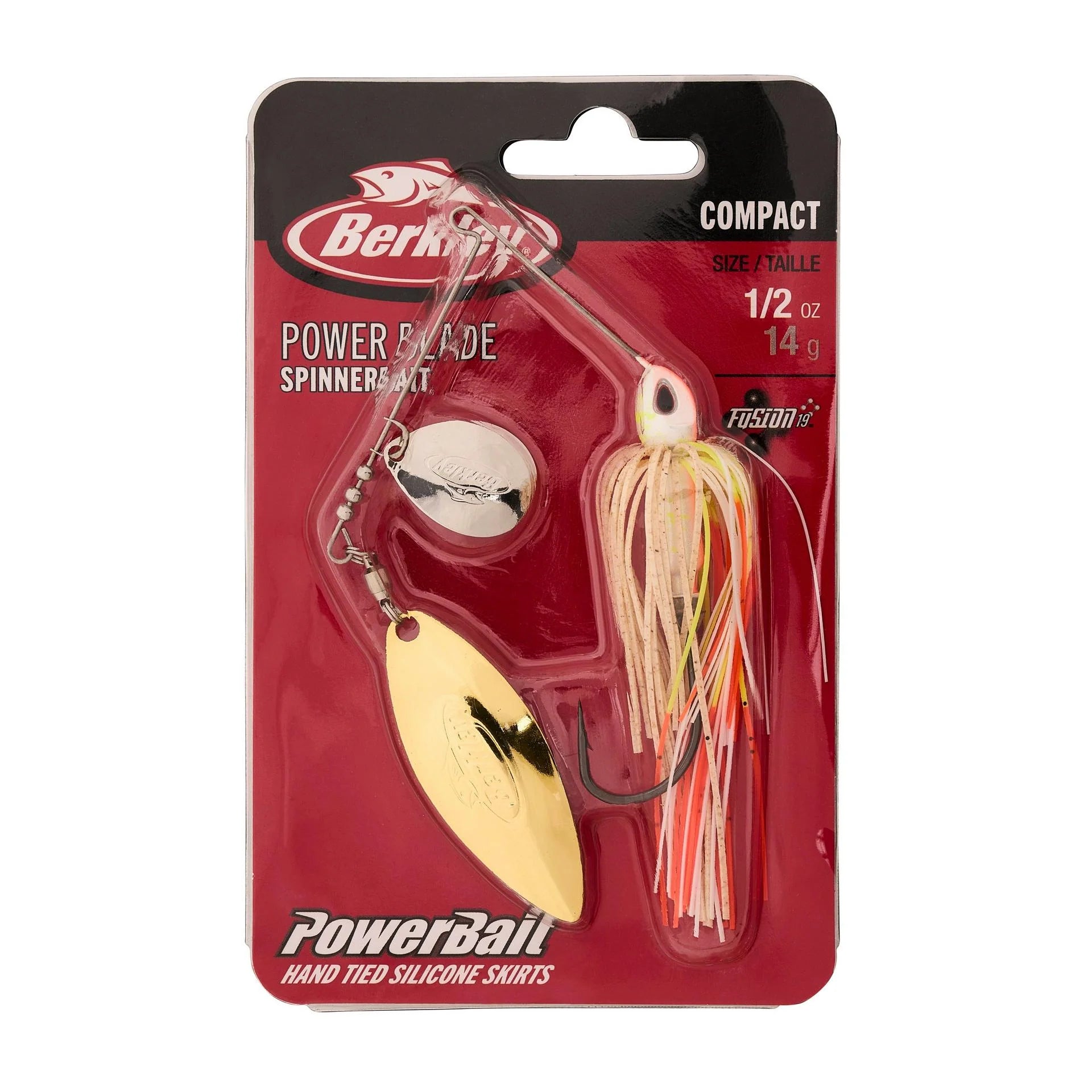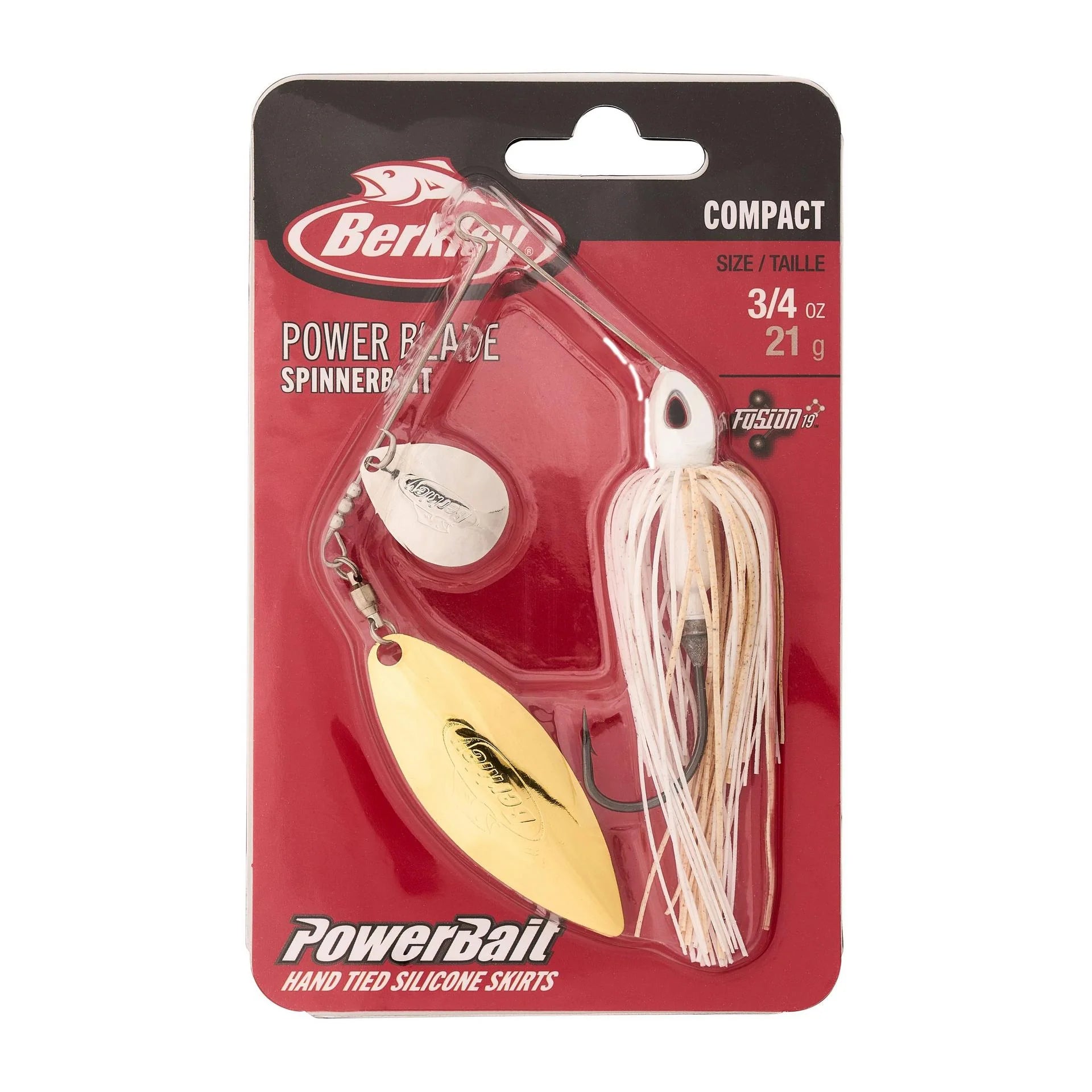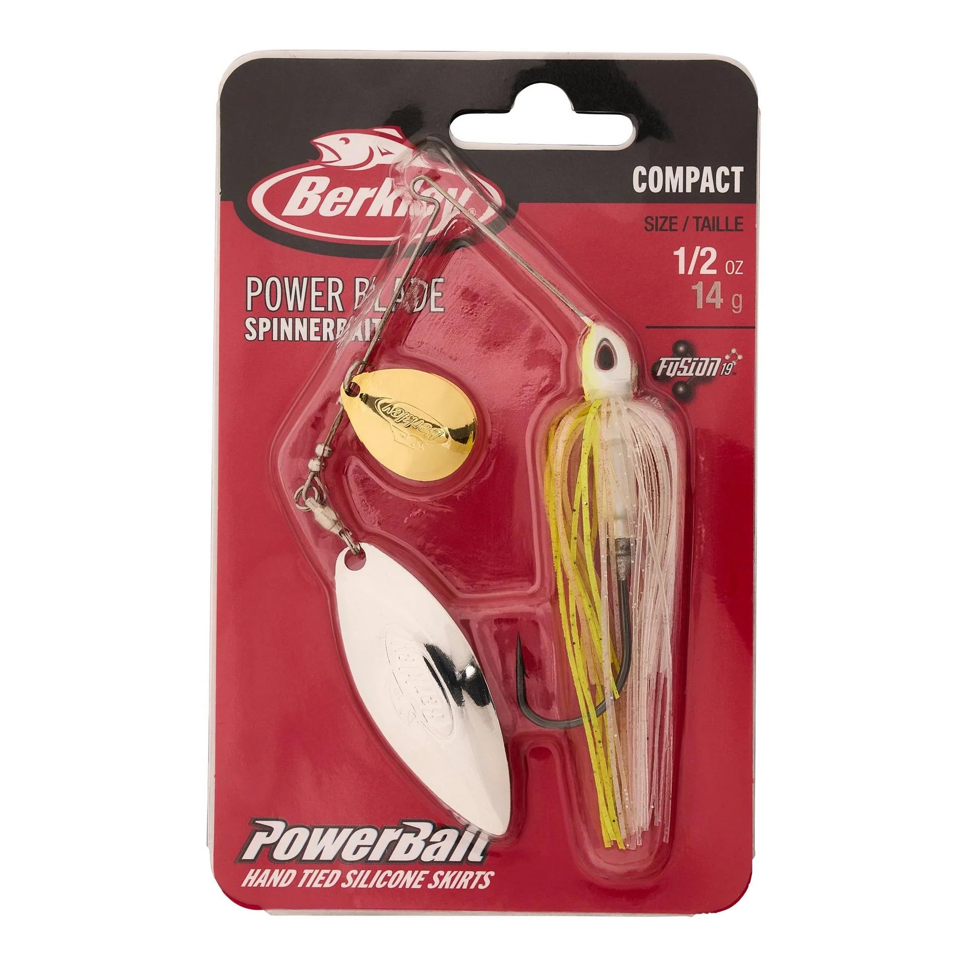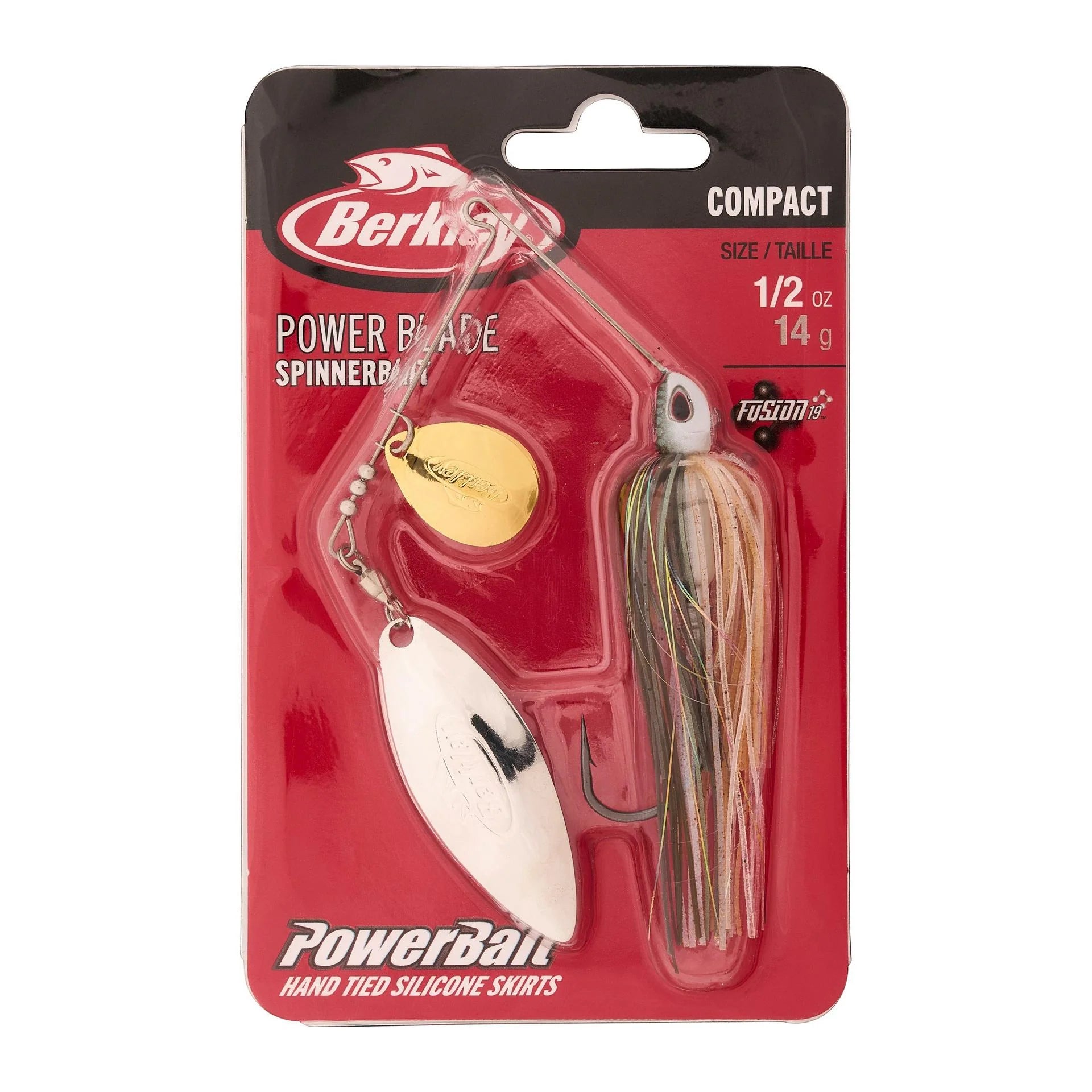 Designed with professional angler and expert spinnerbait fisherman Edwin Evers, the Berkley Power Blade breathes modern design and execution into an old school technique. Utilizing a smaller profile and built with long lasting premium componentry, the Compact Power Blade series is engineered with performance and technique specific applications in mind. This series is perfect for when you need the weight without the bulk as it features a hidden weight design and a scaled down wire form. Whether slow rolling a single colorado or burning a double willow, our custom blades are designed from the ground up in order to ensure performance, cast after cast. The extended shank Fusion19 O'Shaughnessy style hook virtually eliminates the need for a trailer hook and allows the bait to be fished in and through the cover without hesitation. Top it off with a hand tied PowerBait silicone skirt and finely tuned color and blade selection. The Berkley Power Blade is all an angler needs in his spinnerbait box.