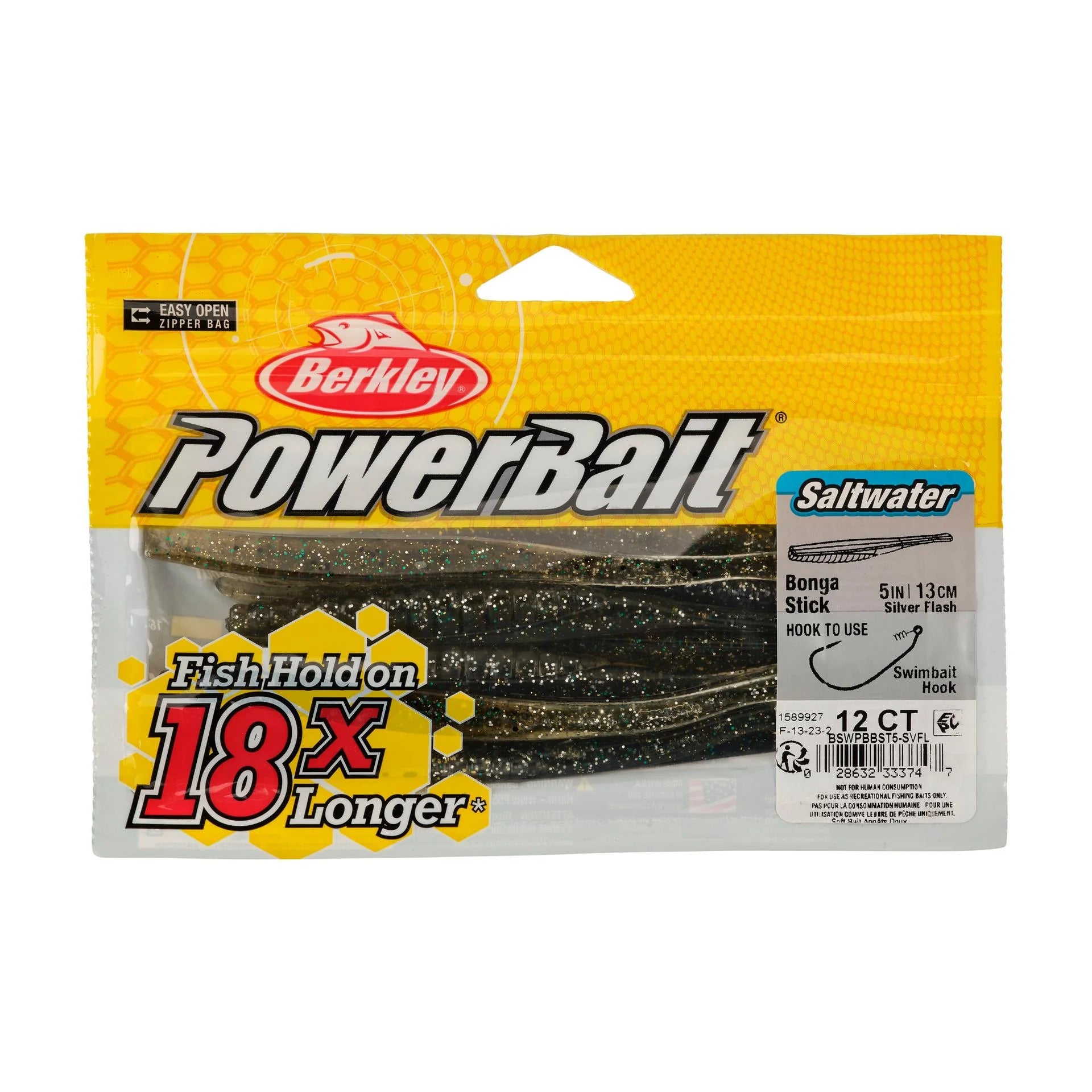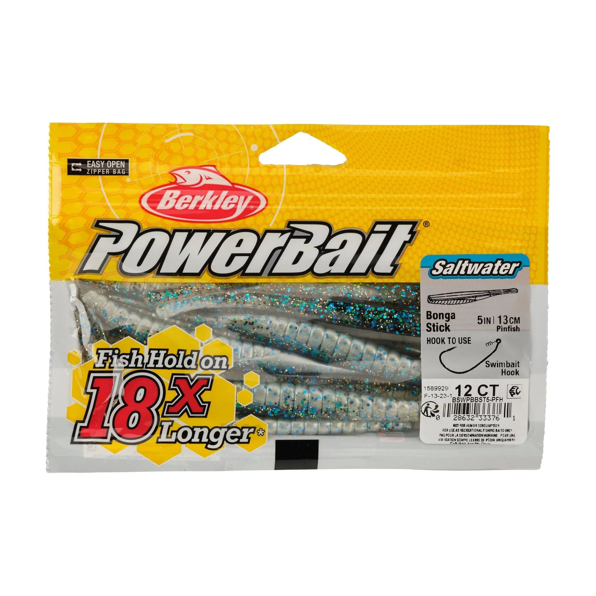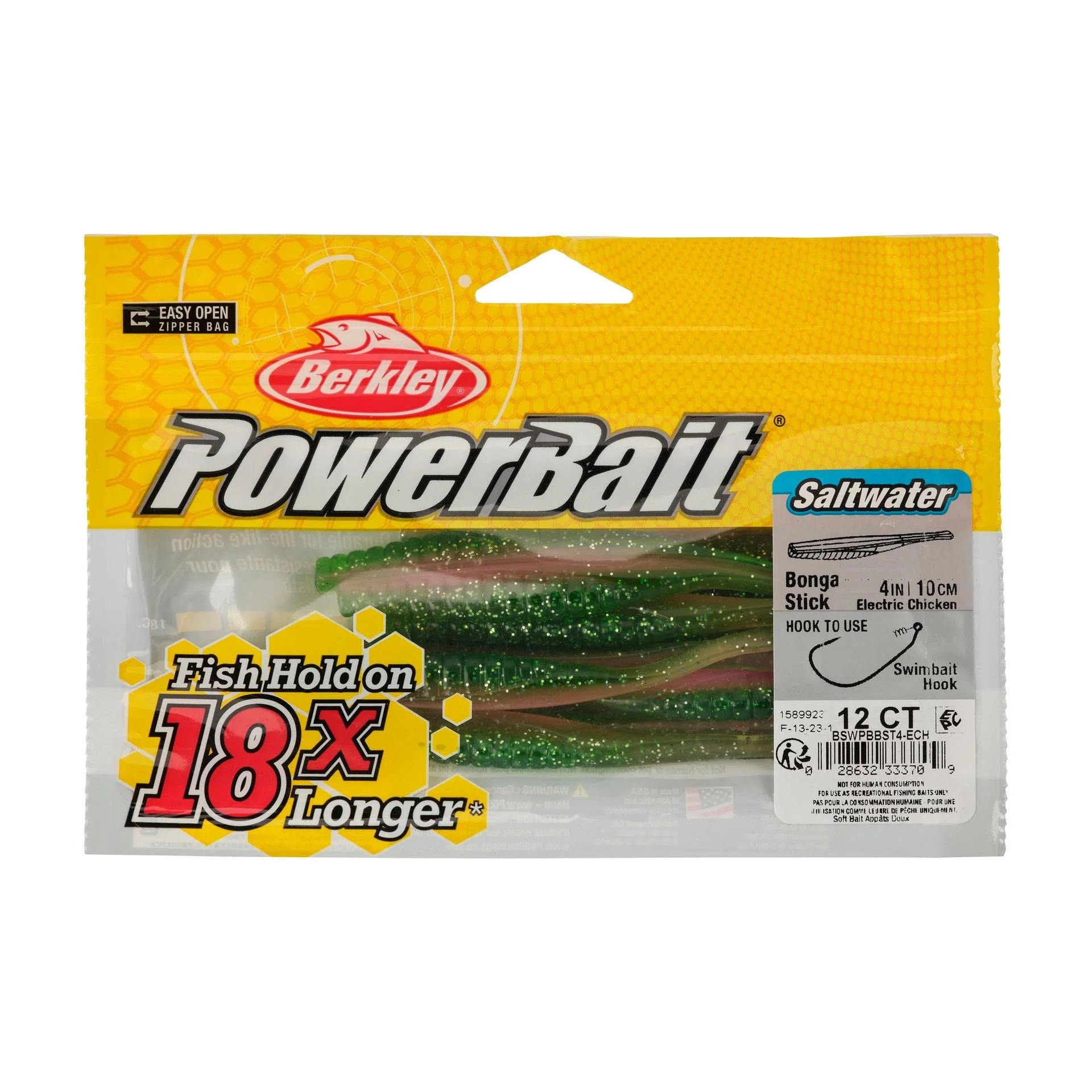The Saltwater PowerBait® Bonga Stick features a slender stickbait profile with the versatility for multiple rigging applications. The triangular cross section creates erratic movement to trigger strikes. This lure rigs perfectly on a EWG hook or jighead to deliver it to the right location in the water column