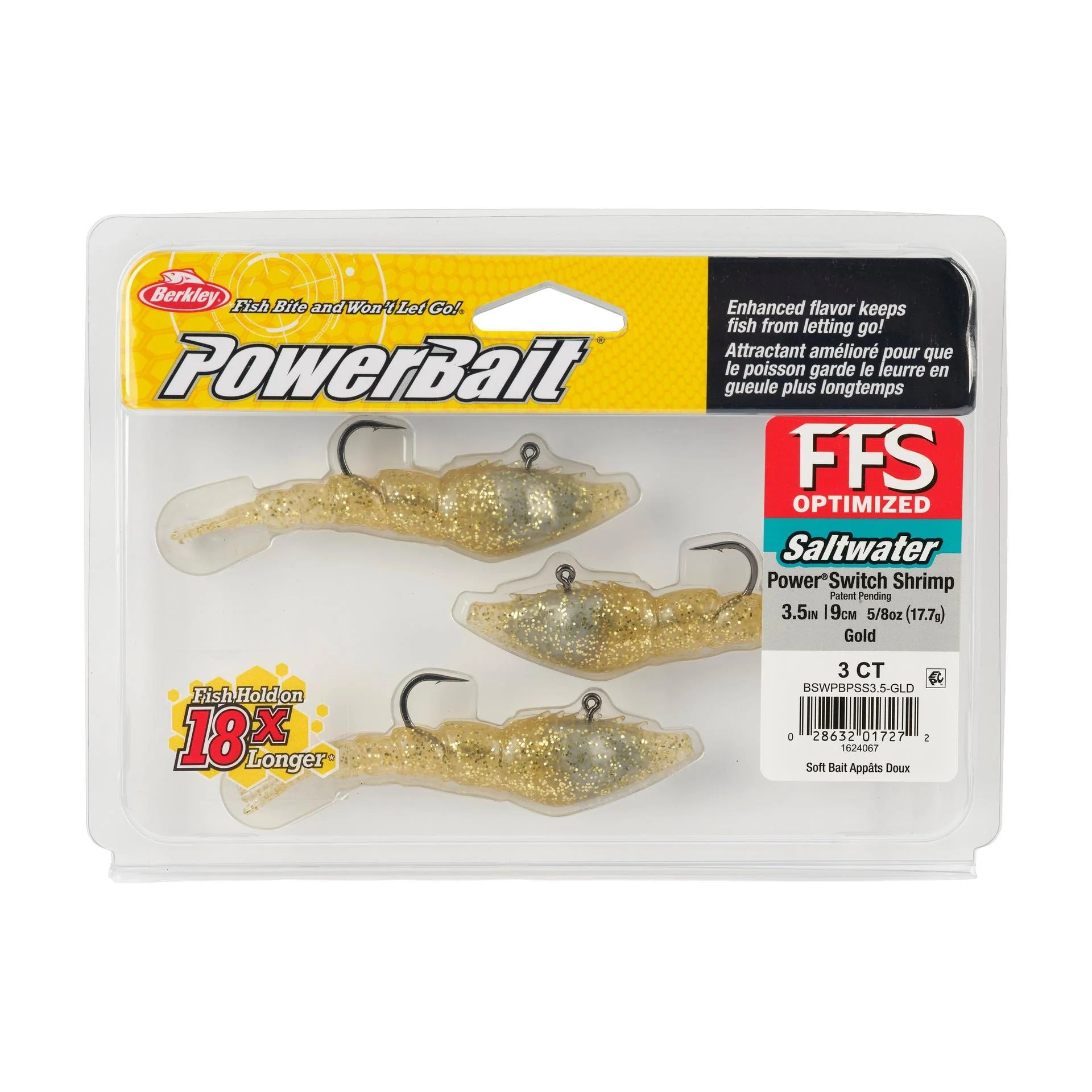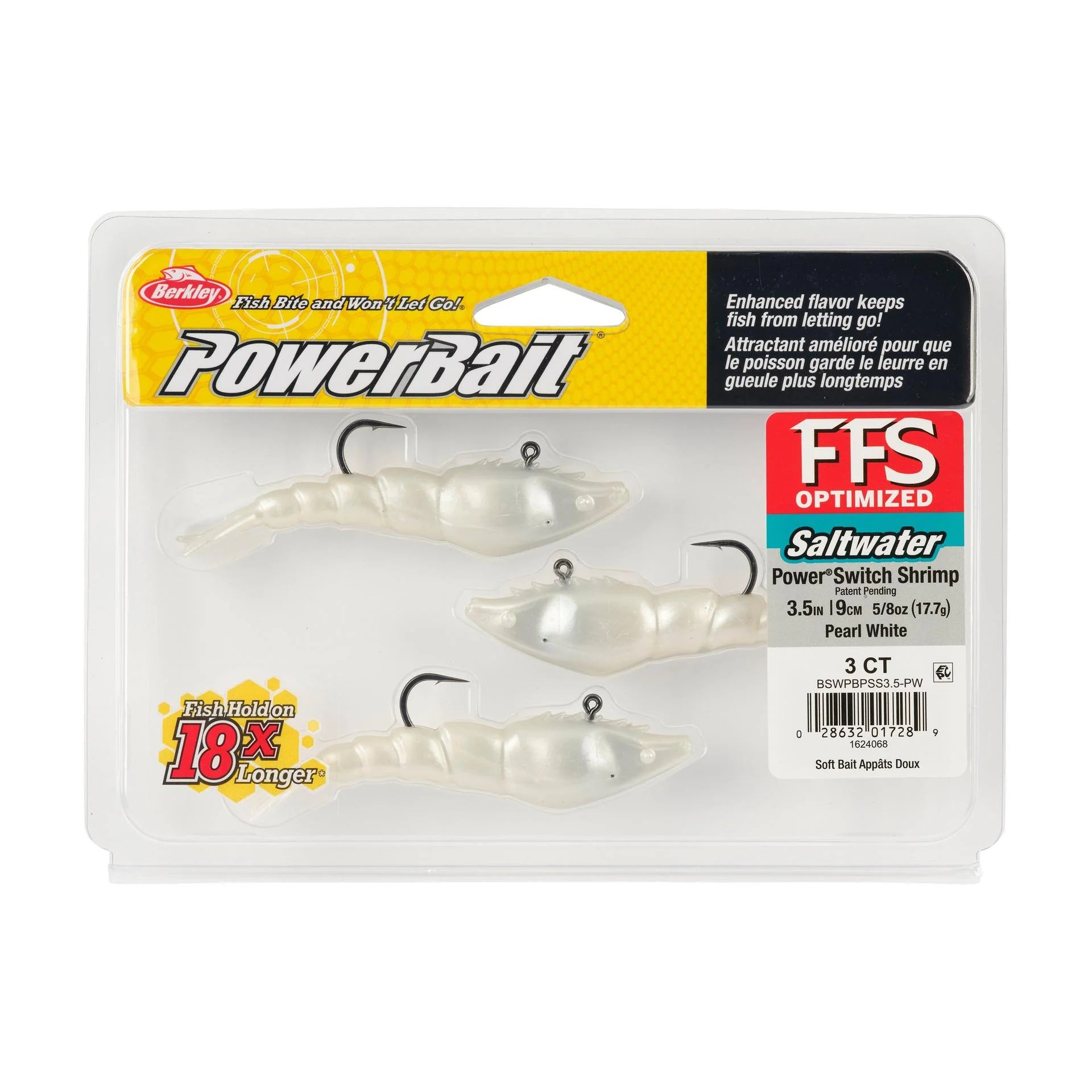 Developed with FFS (Forward-Facing Sonar) in mind, The PowerBait® Saltwater PowerSwitch Shrimp is perfectly pre-rigged and weighted to tie on and cast to the strike-zone. The PowerSwitch Shrimp has a darting action designed to imitate a fleeing shrimp, and its 90-degree line tie gives the angler the ultimate control to keep the bait in the strike zone.